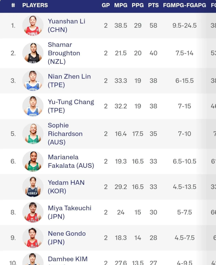 球员方面,中国小将李沅珊目前场均29分,排在本届亚洲杯的第1位,距离排名第2的新西兰球员,整整多出9分,但是在得分榜前10位,中国女篮只有1人入围,从这个方面也可以看出,中国女篮要想争冠,机会渺茫,女篮在比赛中没有发挥出团体作战的优势,更多的是靠李沅珊一人发挥,这种打法很明显走不远的。
